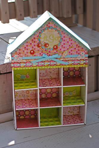 Aujourd'hui, sur le blog de Scrapbook Laurentides, je vous présente un projet altéré que j'ai créé cette semaine : une maison pour les figurines Littlest Pet Shop de ma fille! En effet, il est facile de donner une deuxième vie à un emballage et de le recycler pour en faire un objet utile. Ici, j'ai récupéré une boîte de rubans à 9 compartiments. Pour créer ce projet, j'ai utilisé les papiers et les chipboards de la collection Lemonade de Basic Grey.