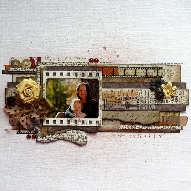 Voici mon deuxième défi pour le crop en ligne, soit utiliser de la pellicule (film) sur sa page. J'ai utilisé un chipboard Magenta imitant la pellicule de même que de la pellicule de Tim Holtz.